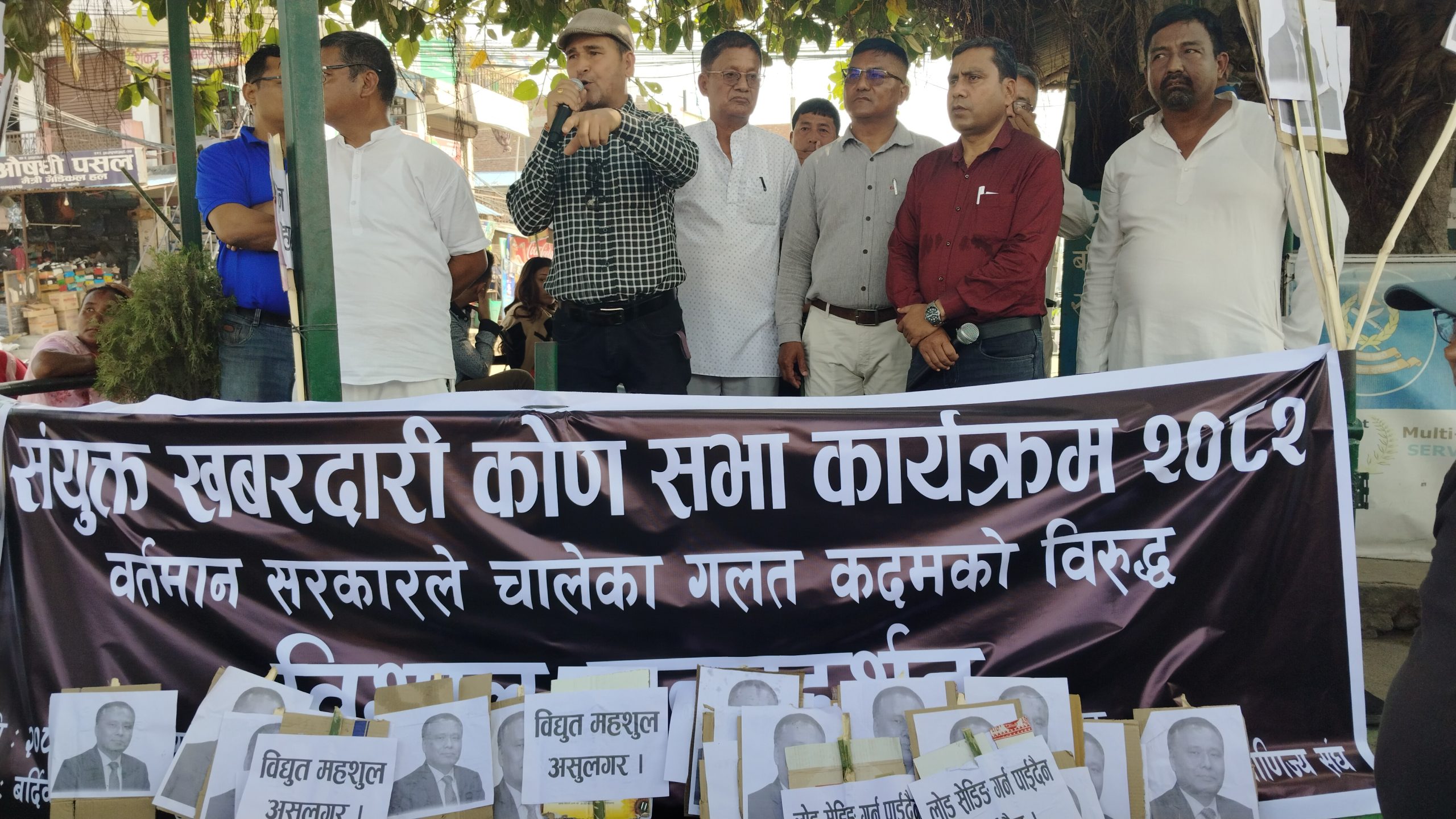कोणसभालाई सम्बोधन गर्दै बर्दिवास उद्याेग बाणिज्य संघका अध्यक्ष बिष्णु खड्काले सरकारको पक्ष-विपक्ष भन्दा पनि वेथितिका विरुद्ध खबरदारी भएको धारणा राखे कुलमानलाई हटाएदेखी अघोषित लोडसेडिङ भएको जिकिर गर्दै जनप्रतिनिधिहरुले जनताको पक्षमा काम गर्न नसकेको आरोप लगाए।