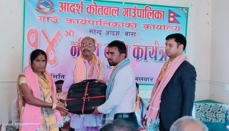 बाराको आदर्श कोतवाल गाउँपालिकाको १४ औं गाउँसभा सोमबार सम्पन्न भएको छ। गाउँपालिका अध्यक्ष जवाहर प्रसादको अध्यक्षतामा बसेको सभामा आर्थिक वर्ष २०८२/०८३ का लागि नीति तथा कार्यक्रम प्रस्तुत गरिएको छ। उनले आगामी आवका लागि ४५ करोड ५३ हजार ५९रुपैयाको बजेट प्रस्तुत गरेका छन ।