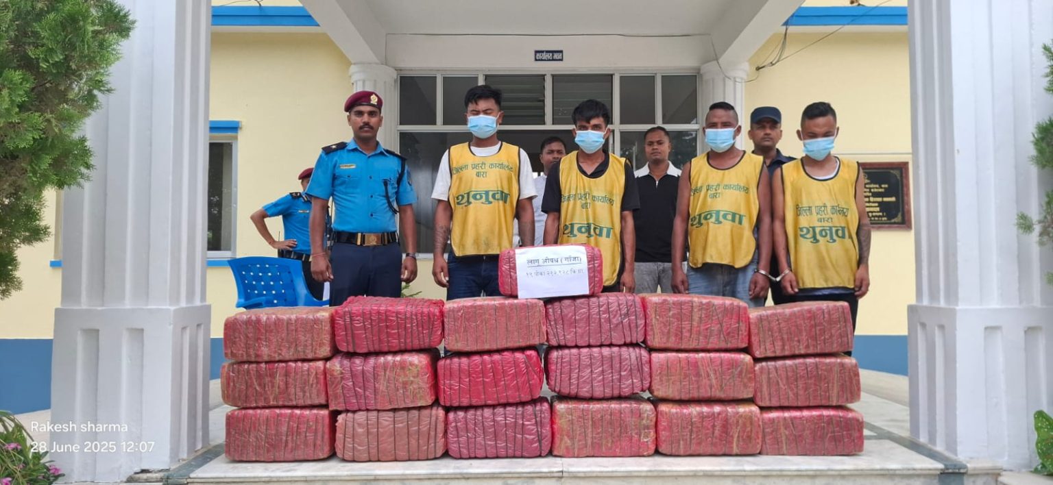जिल्ला प्रहरी कार्यालय बाराबाट प्रहरी निरीक्षक खेम प्रसाद नेपालको कमाण्डमा ईलाका प्रहरी कार्यालय सिमरा र प्रसौनी बाट विशेष सुचनाको आधारमा खटिएको संयक्त प्रहरी टोलिले २ सय १२ किलो ९२८ ग्राम लागु औषध गाँजा बरामद गरेको हो।