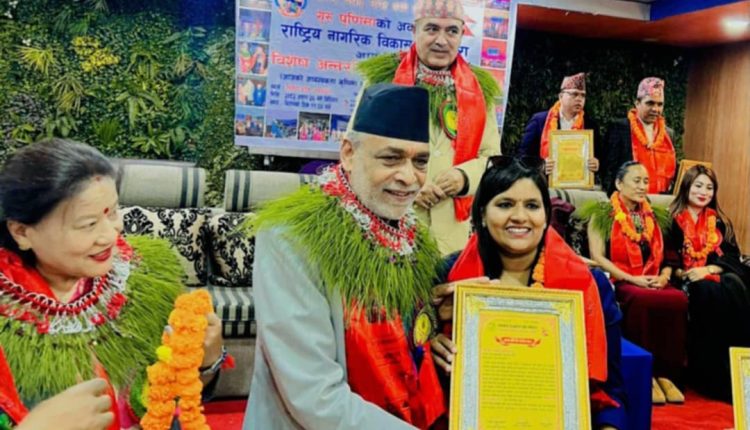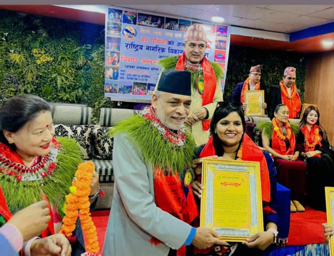 उनको यही समर्पण र योगदानको कदरस्वरूप ‘राष्ट्रिय नागरिक विकास समाज’ले आयोजना गरेको कार्यक्रममा कृषि तथा पशुपन्छी विकास मन्त्री रामनाथ अधिकारीले उनलाई सम्मानपत्र प्रदान गरे ।
