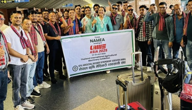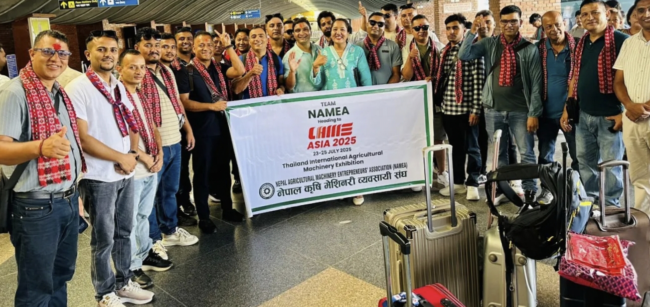 ललितपुर, साउन ७: अन्तर्राष्ट्रिय कृषि यान्त्रिकरण प्रदर्शनी ‘सीआईएएमई एसिया २०२५’ मा सहभागी हुन नेपाल कृषि मेसिनरी व्यवसायी संघ (नामिया)का अध्यक्ष कृष्ण शर्माको नेतृत्वमा ३० सदस्यीय नेपाली प्रतिनिधिमण्डल आज थाइल्याण्ड प्रस्थान गरेको छ।