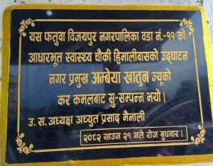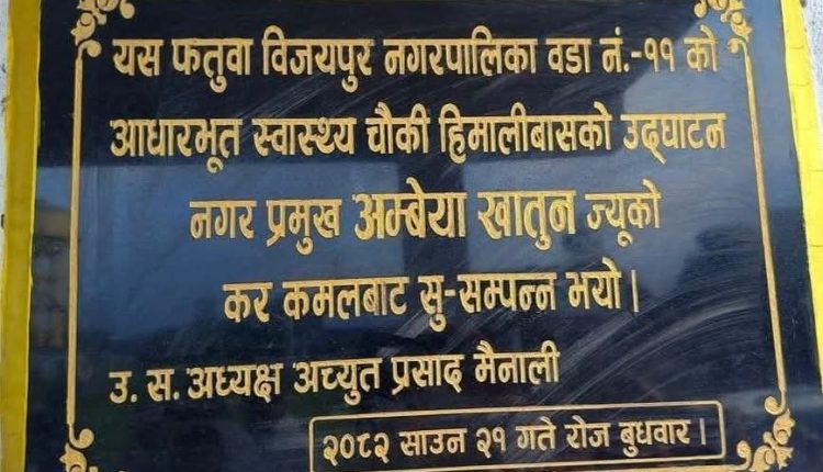 खातुनले वडा ११ मा बुधवार उद्घाटन गरिएको ‘आधारभूत स्वास्थ्य चौकी हिमालीवास’ को शिलापाटीमा कार्यवाहकको स्थानमा मनपरी नगर प्रमुख लेखाएपछि अहिले नगरका बुद्धिजीवी देखी सामाजिक सञ्जाल फेसबुकमा आलोचना सुरु भएको हो।