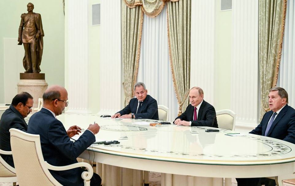 डोभालले रुसी रक्षामन्त्री सर्गेई शोइगुसँगको भेटमा भनेका थिए, ‘अब हाम्रो सम्बन्ध धेरै विशेष भएको छ, जसलाई हामी महत्व दिन्छौं। हाम्रा देशहरूबीच बलियो साझेदारी छ र हामी उच्च तहमा अन्तरक्रिया गर्छौं।’