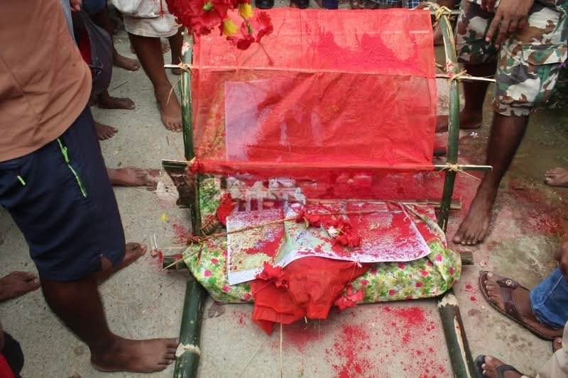 बाराको फेटा गाउँपालिका–१ भलुहीका प्रहरी जवान मुन्ना ठाकुरको रसुवामा आएको बाढीमा बेपत्ता भएपछि कुशको प्रतीकात्मक शव तयार गरी अन्तिम संस्कार गरिएको छ।