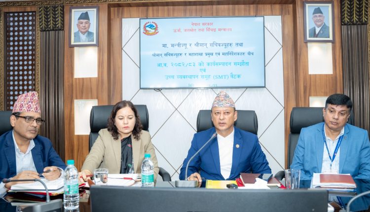 मन्त्री दीपक खड्का र मन्त्रालयअन्तर्गतका तीन सचिवबीच बुधवार सम्पन्न सम्झौतामा योजनागत कामलाई परिणाममुखी बनाउन प्रतिबद्धता व्यक्त गरिएको हो।