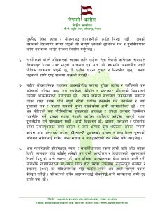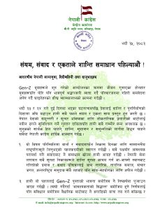 कांग्रेसले जेनजी पुस्ताको भावनाअनुरूप निष्कर्ष निकाल्न आग्रह गर्दै संविधानबमोजिमै समाधान खोज्नुपर्नेमा जोड दिएको छ। “विधिविहीनताले अराजकता बढाउँछ, त्यसैले वार्ताका क्रममा राष्ट्रपतिज्यू र जेनजी पक्षले वैधानिक बाटो अपनाउनुपर्छ। नयाँ राजनीतिक संरचना बनाउँदा पनि संवैधानिक रिक्तता आउन नदिने उपाय खोजिनुपर्छ। त्यसमा हाम्रो समर्थन रहनेछ,” विज्ञप्तिमा उल्लेख छ।