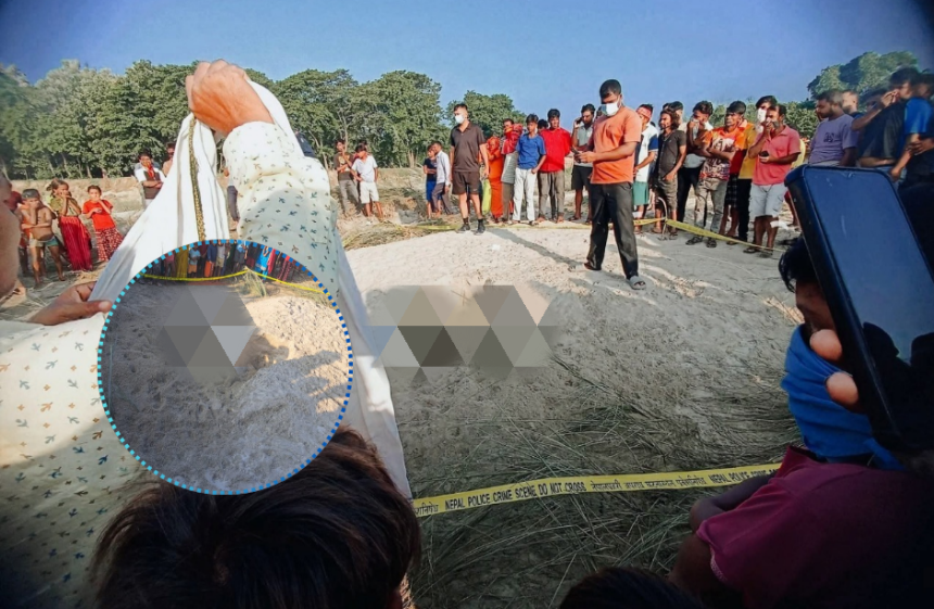खुट्टा र कपडा देखिरहेको आधी भाग बालुवा रहेको अवस्थामा शव फेला परेको प्रहरी निरीक्षक श्रेष्ठले जानकारी दिए। उनका अनुसार अनुसन्धान तथा मुचुल्काको कार्य सम्पन्न गरी पोस्टमाटमको लागी प्रादेशिक अस्पताल कलैयामा पठाइएको छ।
