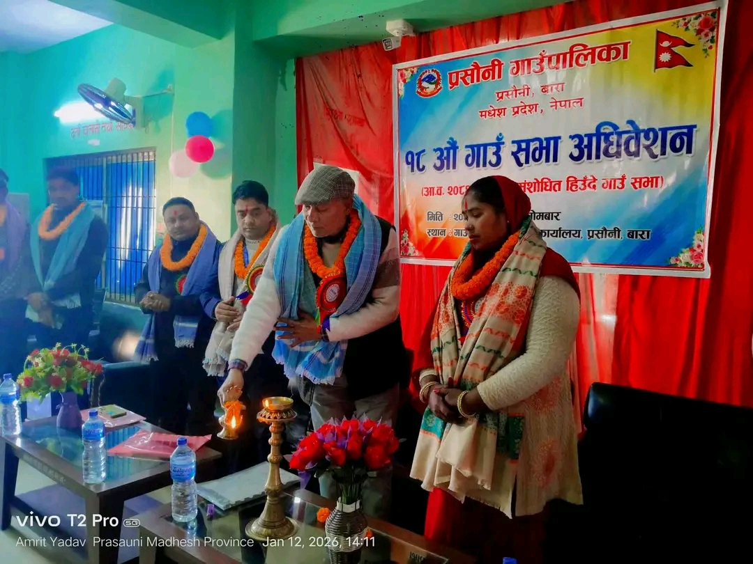 प्रसौनी गाउँपालिकाको १८ औँ गाउँसभा अधिवेशन तथा आर्थिक वर्ष २०८२/०८३ को संशोधित हिउँदे गाउँसभा सोमबार एक कार्यक्रमका बीच सम्पन्न भएको छ। गाउँपालिका सभाहलमा आयोजित उक्त गाउँसभामा स्थानीय जनप्रतिनिधि, कर्मचारी, सुरक्षाकर्मी तथा सञ्चारकर्मीहरूको उल्लेख्य उपस्थिति रहेको थियो।