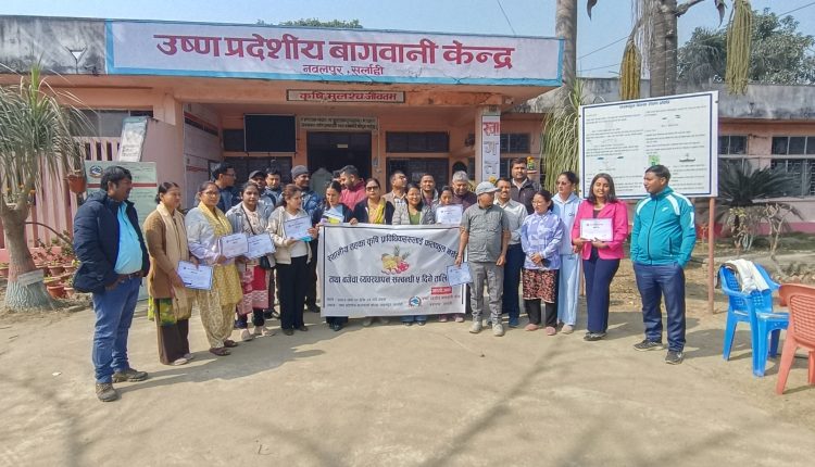 स्थानीय तहका कृषि प्राविधिकका लागि पाँच दिने फलफूल नर्सरी तथा बगैंचा व्यवस्थापन तालिम सम्पन्न